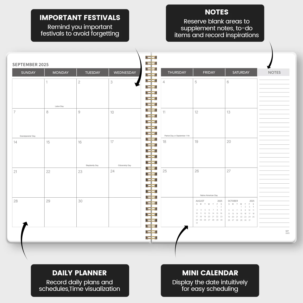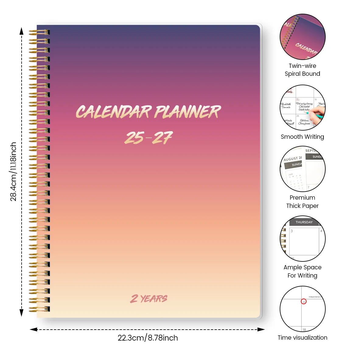 2025.7-2027.6, 2-Year Monthly Planner, Weekly Plan, Daily Notebook, Calendar Book, with A4 Size Pages, Office and Academic Book