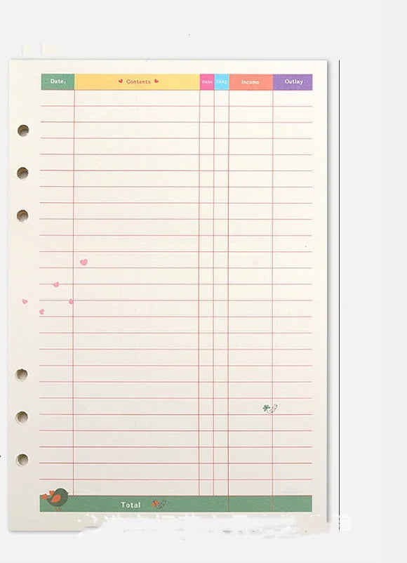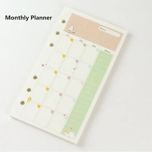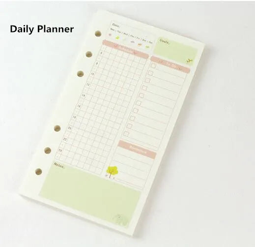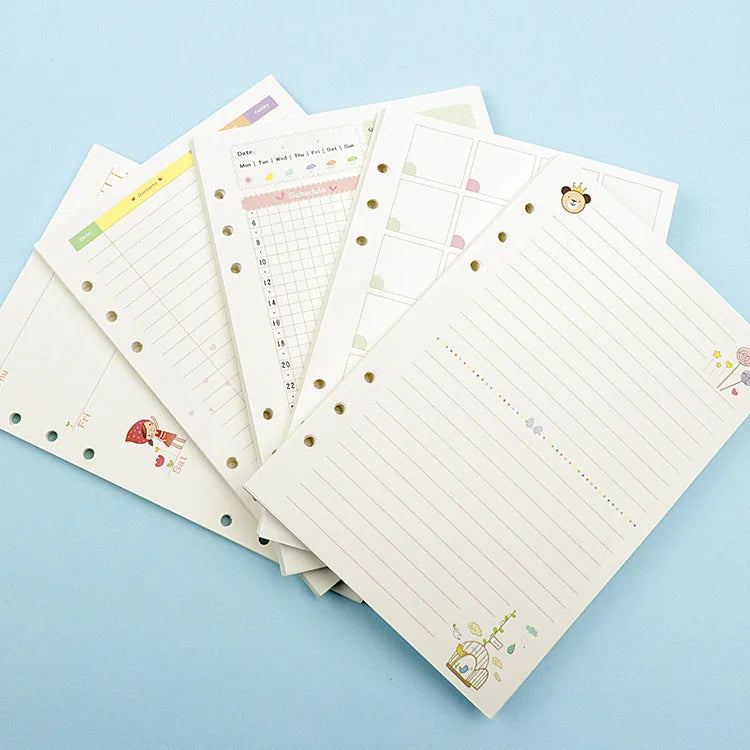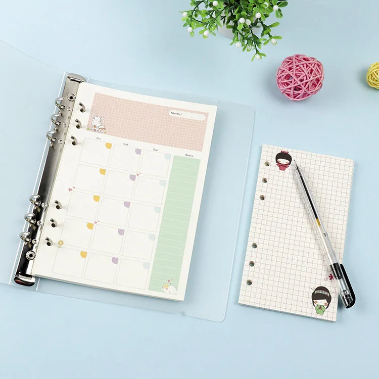 2026Colored A5 A6 Loose Leaf Notebook Refill Spiral Binder Inner Page Weekly Monthly To Do Line Dot Grid Inside Paper Stationery