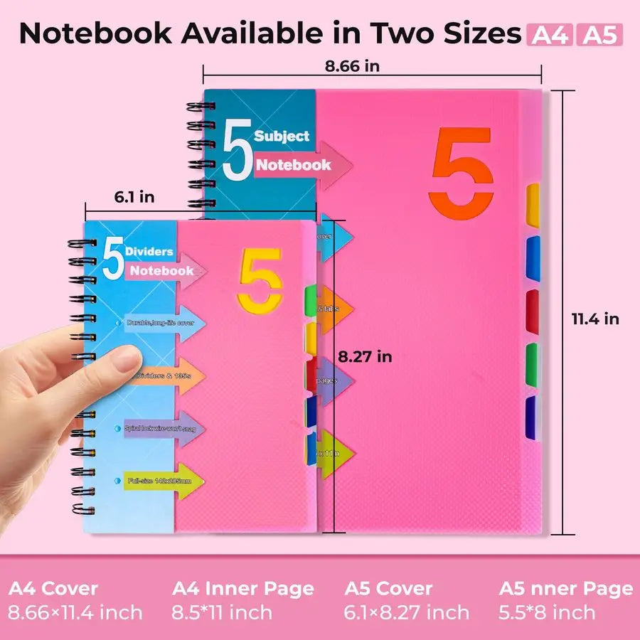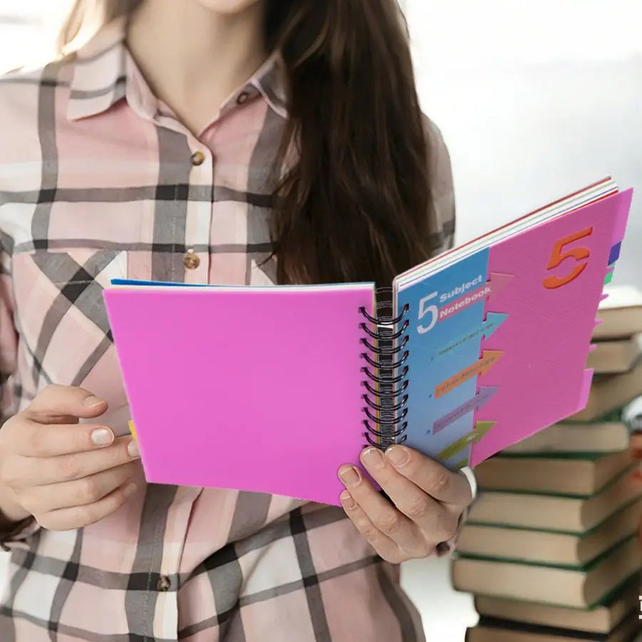 5 Subject Notebook The small notebook with dividers can help you better sort and quickly find the contents of your notes, saving you precious time. You just take 1 spiral notebook for multi subjects. Save the trouble of carrying multiple heavy notebooks Get yours now