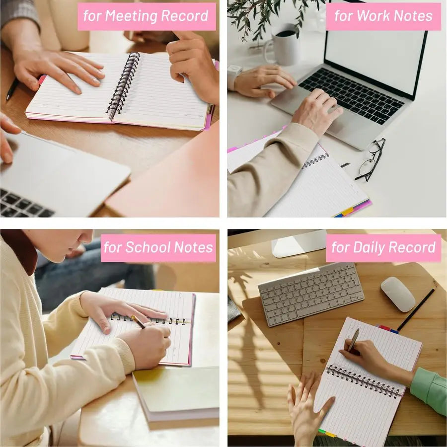 220 Pages Enough Space Multiple Subject Notebook with 220 pages 110 sheets, 5 subject notebook provides enough space for note taking or work recording. Small spiral notebook pages are made of 80gsm thick paper, which can bring you a better writing experience. Hardcover notebook using flexible paper material, to protect your eyes.5 subject notebook for work or note taking, perfectly suitable for notes taking and todo lists.