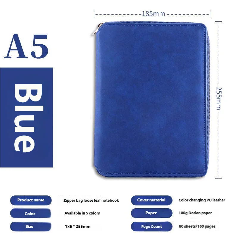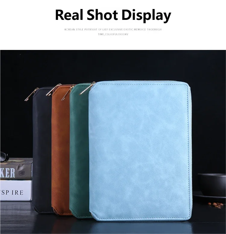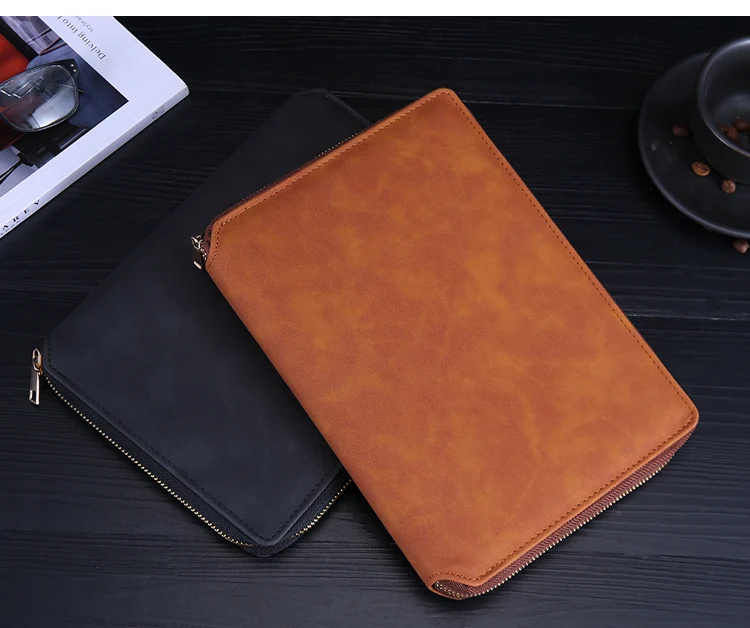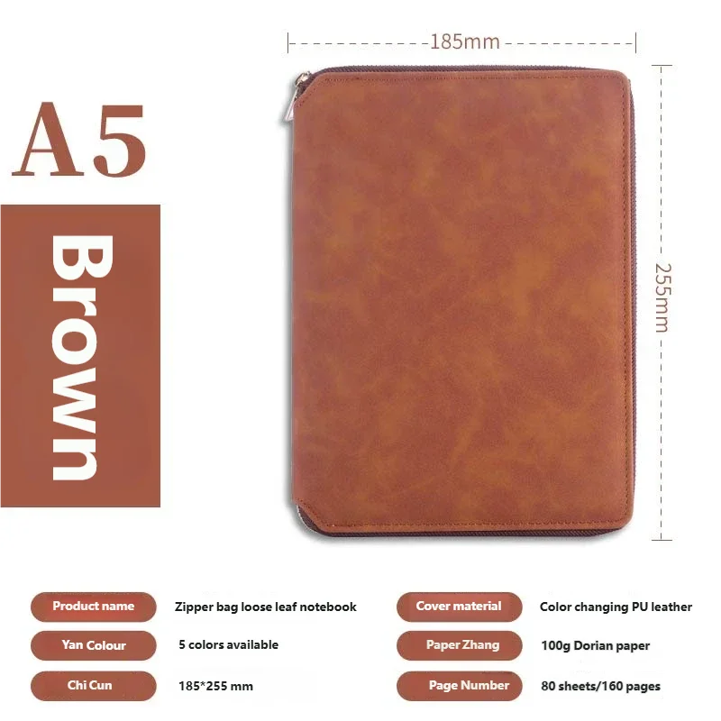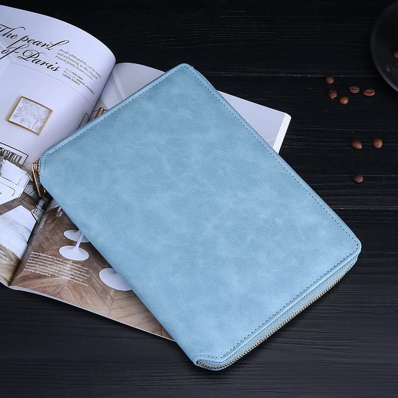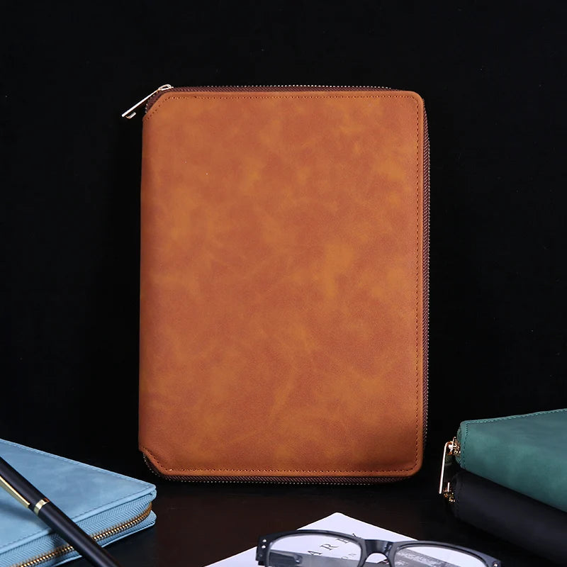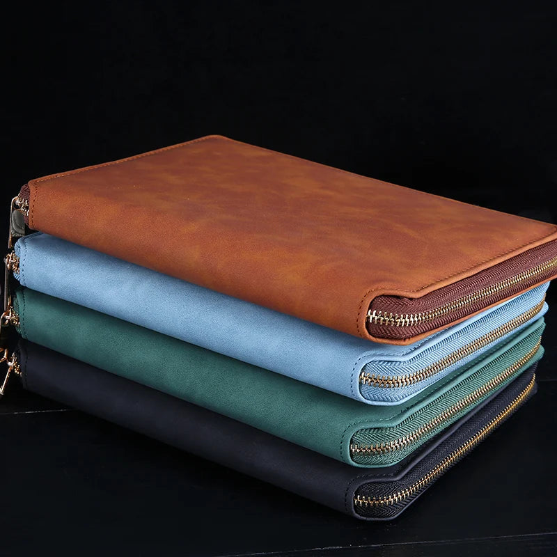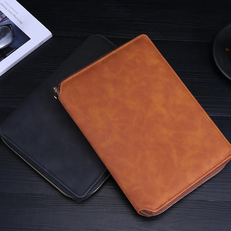 A5 Leather Zipper Closure Notebook Carrying Bag - Portable, Multiple Colors, Office School Daily Storage Organizer