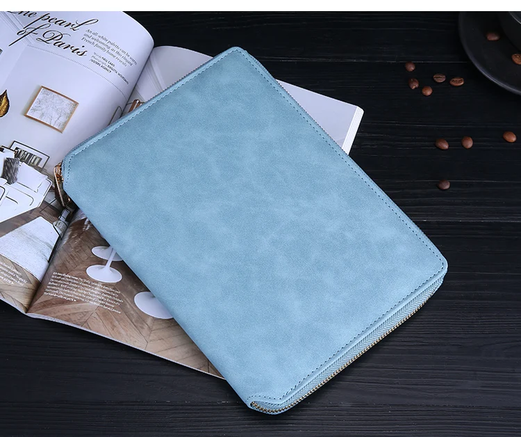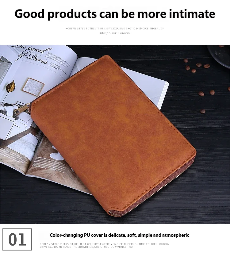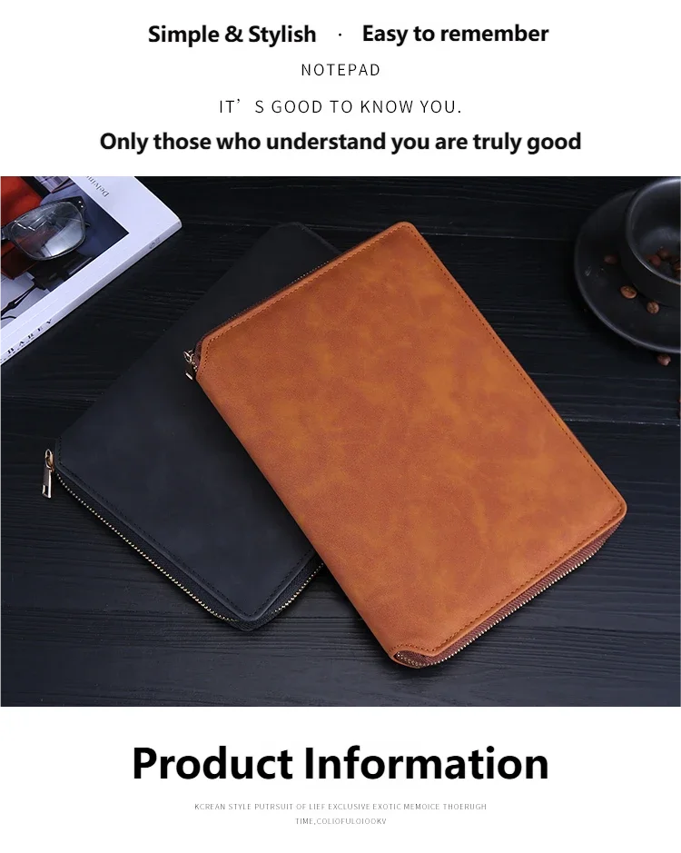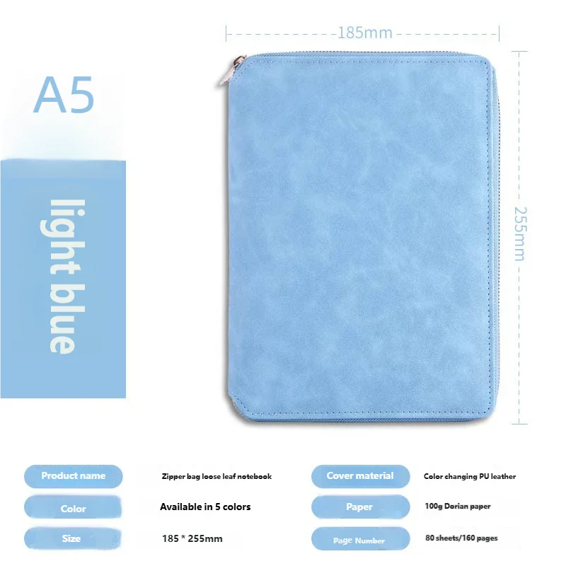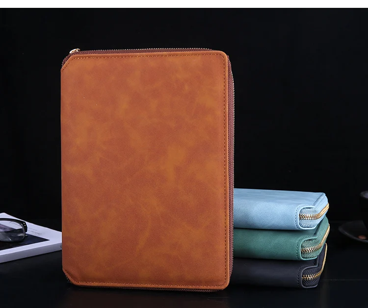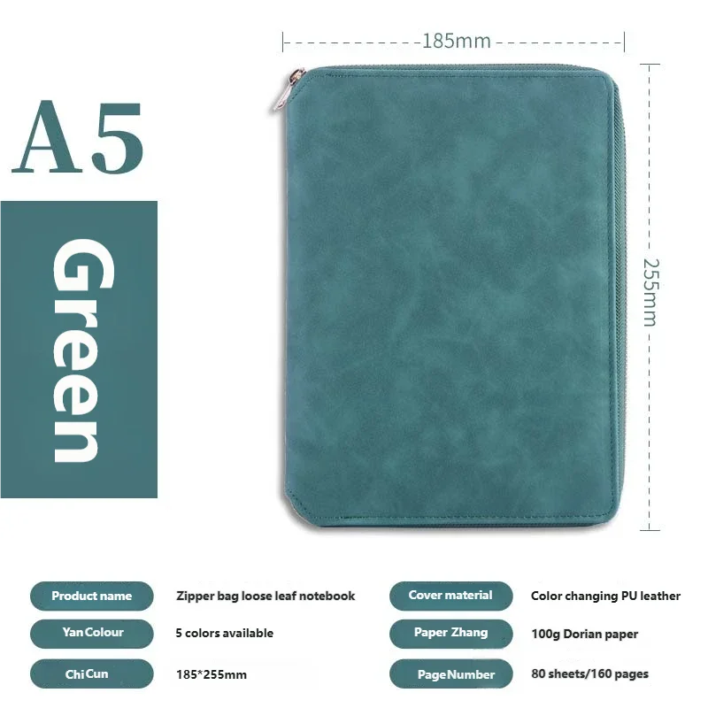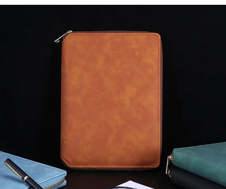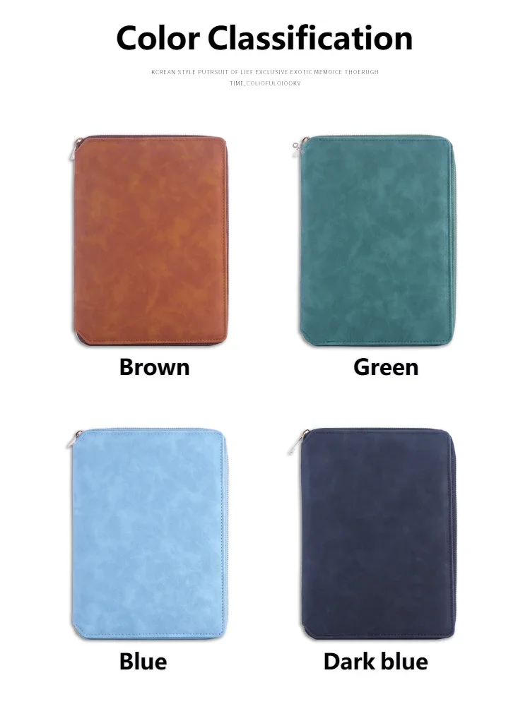 A5 Leather Zipper Closure Notebook Carrying Bag - Portable, Multiple Colors, Office School Daily Storage Organizer