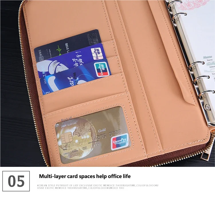Equipped with multi-layer card spaces inside the cover