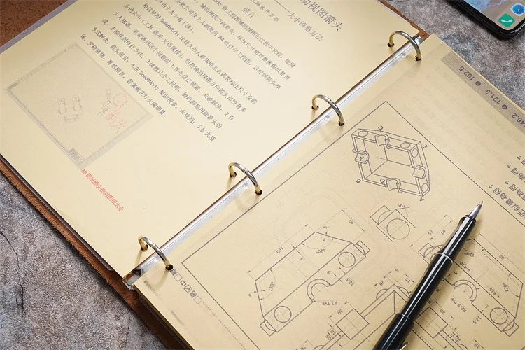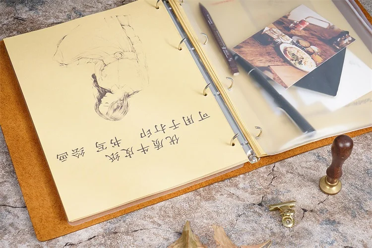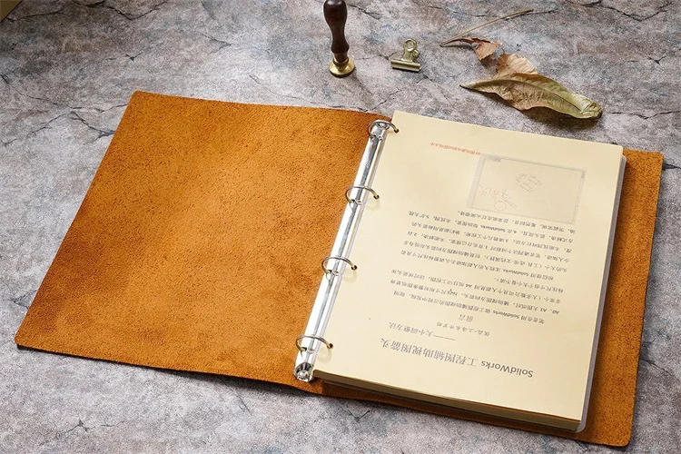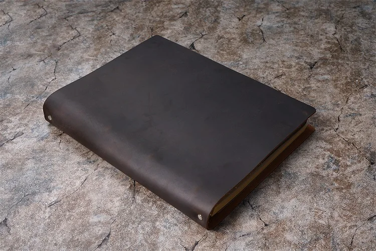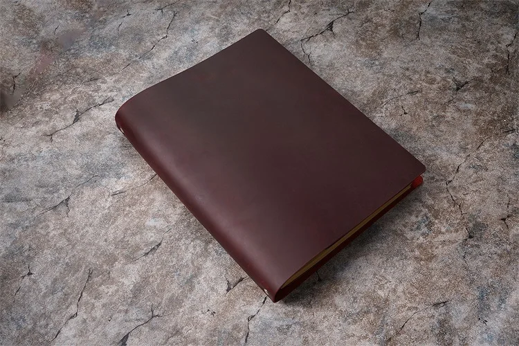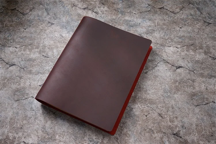 Big Notebook A4 Cowhide Leather Cover Sketchbook Office Retro Loose-leaf Notebook Gift Lined Blank Journal