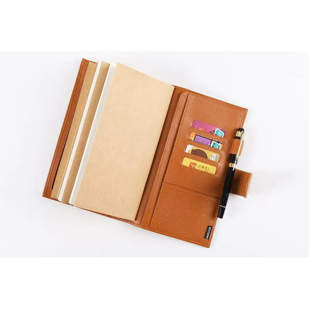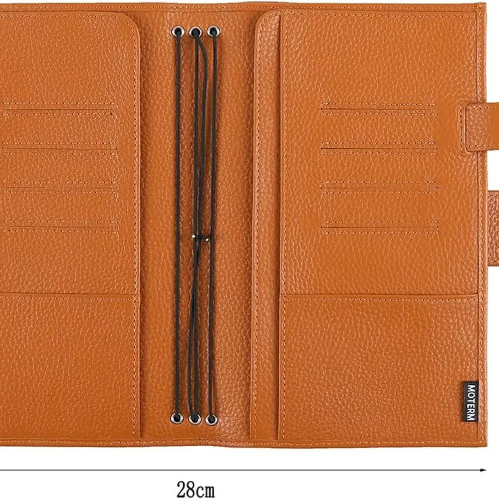 This exquisite traveler's notebook cover is crafted from high-quality top grain leather. It boasts numerous card slots, side pockets, and a spacious back pocket, providing ample storage for receipts, airline tickets, and other documents. The large back pocket is perfect for keeping bills or papers organized. The notebook comes with three refillable inserts (unlined, lined, and grid) to cater to various writing needs, along with an elastic band to secure the contents. It makes an ideal gift for Christmas, holidays, business, travel, Easter, and birthdays.