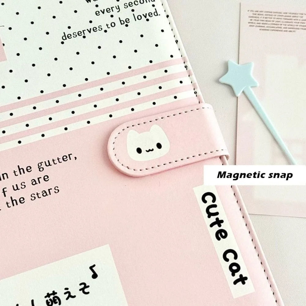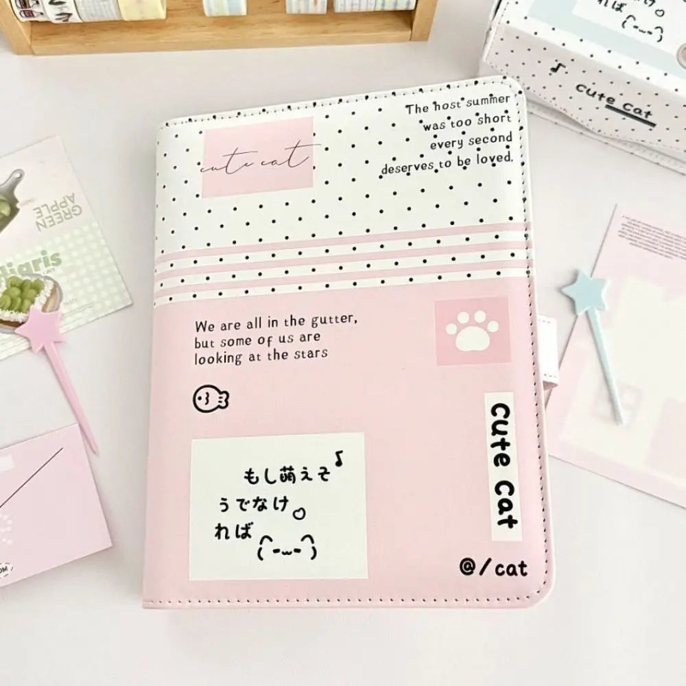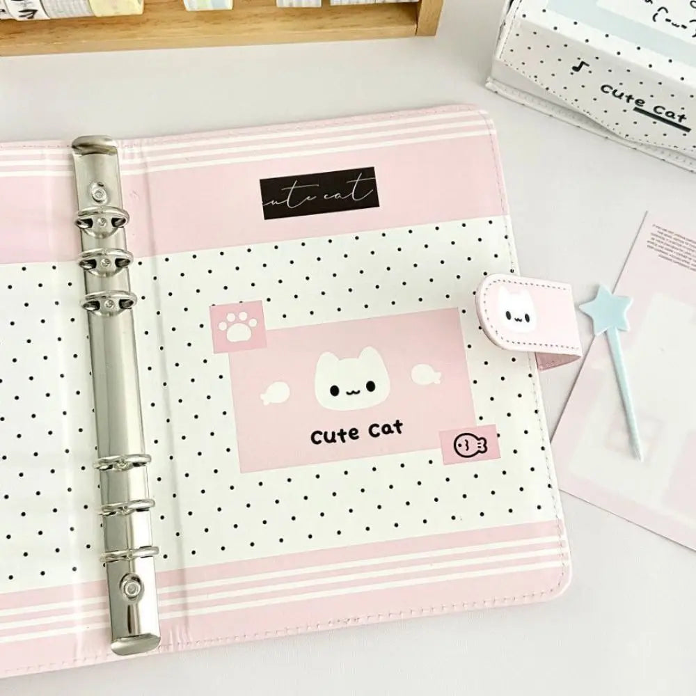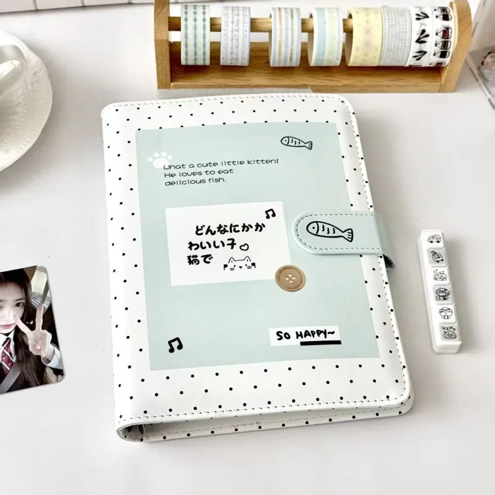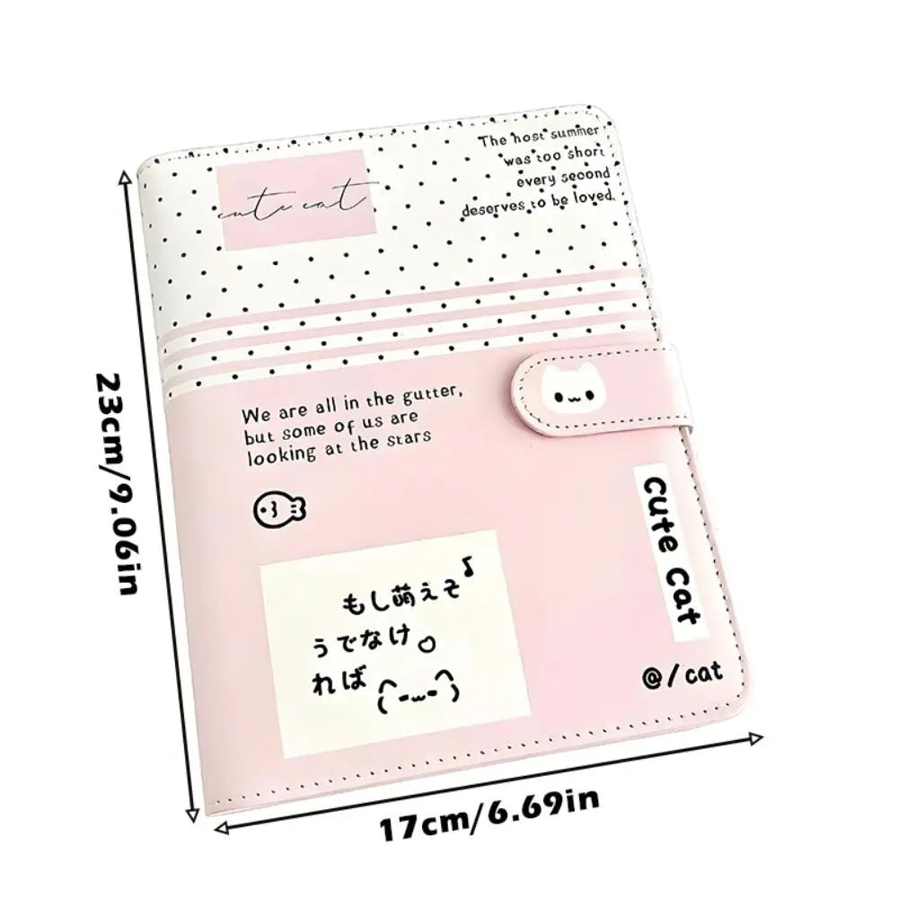 Fashion Portable Kawaii A5 Loose-leaf Notebook PU Leather Polka Dot Cat Photocard Protector Binder Collect Book School Office