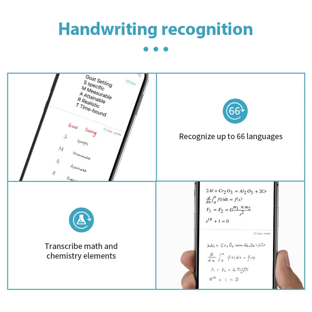 Our APP - NEWYES NOTE can transcribe printed text to digital text, that's the OCR feature. Another significant part is that it can transcribe handwriting notes to editable text! For handwriting recognition, we use Myscript, it can recognize text, shape, math elements, and music!
