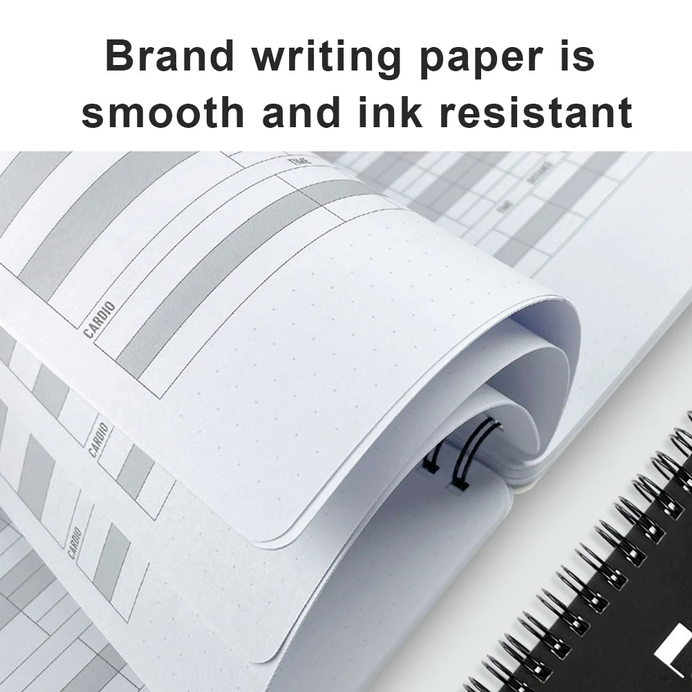 4. Sturdy Black Coil: Equipped with a black coil, this workout planner is resistant to damage. The coil ensures the notebook remains intact through frequent use, providing a reliable tool for your daily fitness tracking.